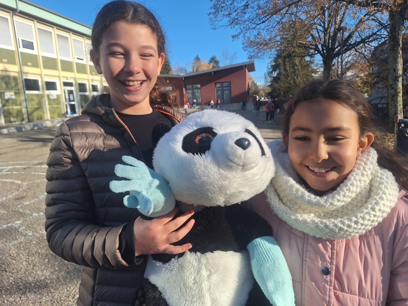 Sara et moi avons mis des gants pour Bambou car il vient de Chine, et nous nous sommes dit qu’il allait avoir froid. En effet, en Chine il fait chaud là-bas ! Donc nous avons mis des gants à Bambou.