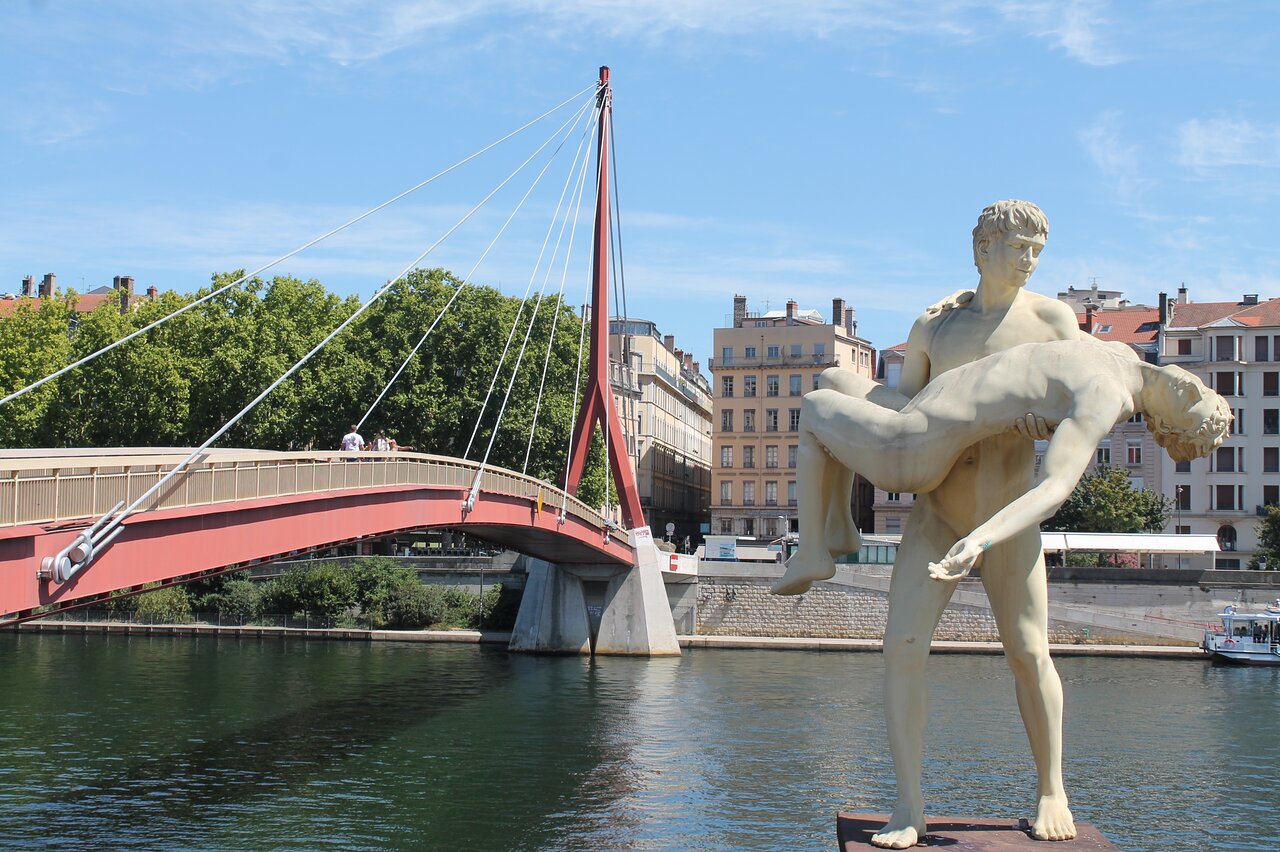 Cette statue se trouve au bord de la Saône, en face du palais de justice. Elle a été inaugurée en 2013. Elle a été réalisée par deux artistes scandinaves, Michael Elmgreen (danois) et Ingar Dragset (norvégien). Ils ont appelé leur sculpture : « Le Poids de soi ».