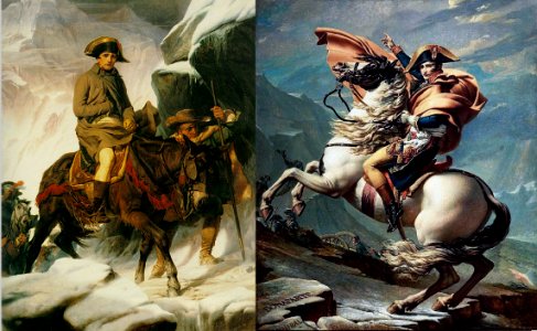 En effet, Napoléon n’avait pas franchi les Alpes dans la posture peinte par Jacques-Louis DAVID.
