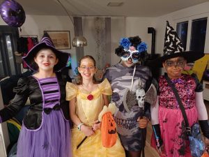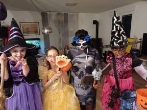 Après la chasse aux bonbons a commencé. Tout allait très bien jusqu’à ce qu’une maison nous donne une carotte parce qu’ils n’avaient pas de bonbons. Quand nous sommes rentrées chez Alice, on a fait des échanges de bonbons et on s’est rhabillées. Après la maman d’Alice nous a ramenées chez nous.