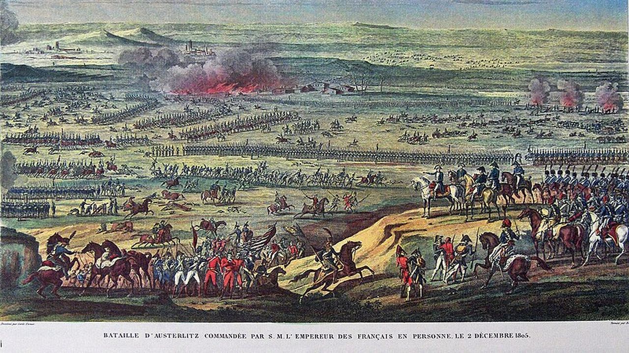 Austerlitz (1805) : C’est sa plus grande victoire. On appelle ça la « bataille des Trois Empereurs ».