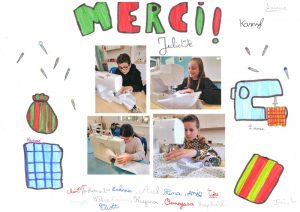 La couture est une activité passionnante que nous avons vécue. D’une part j’aime coudre et utiliser les machines, d’autre part c’était très agréable car les couturières étaient très gentilles.